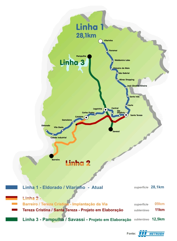 - Foto: Mapa Linhas Metro bh