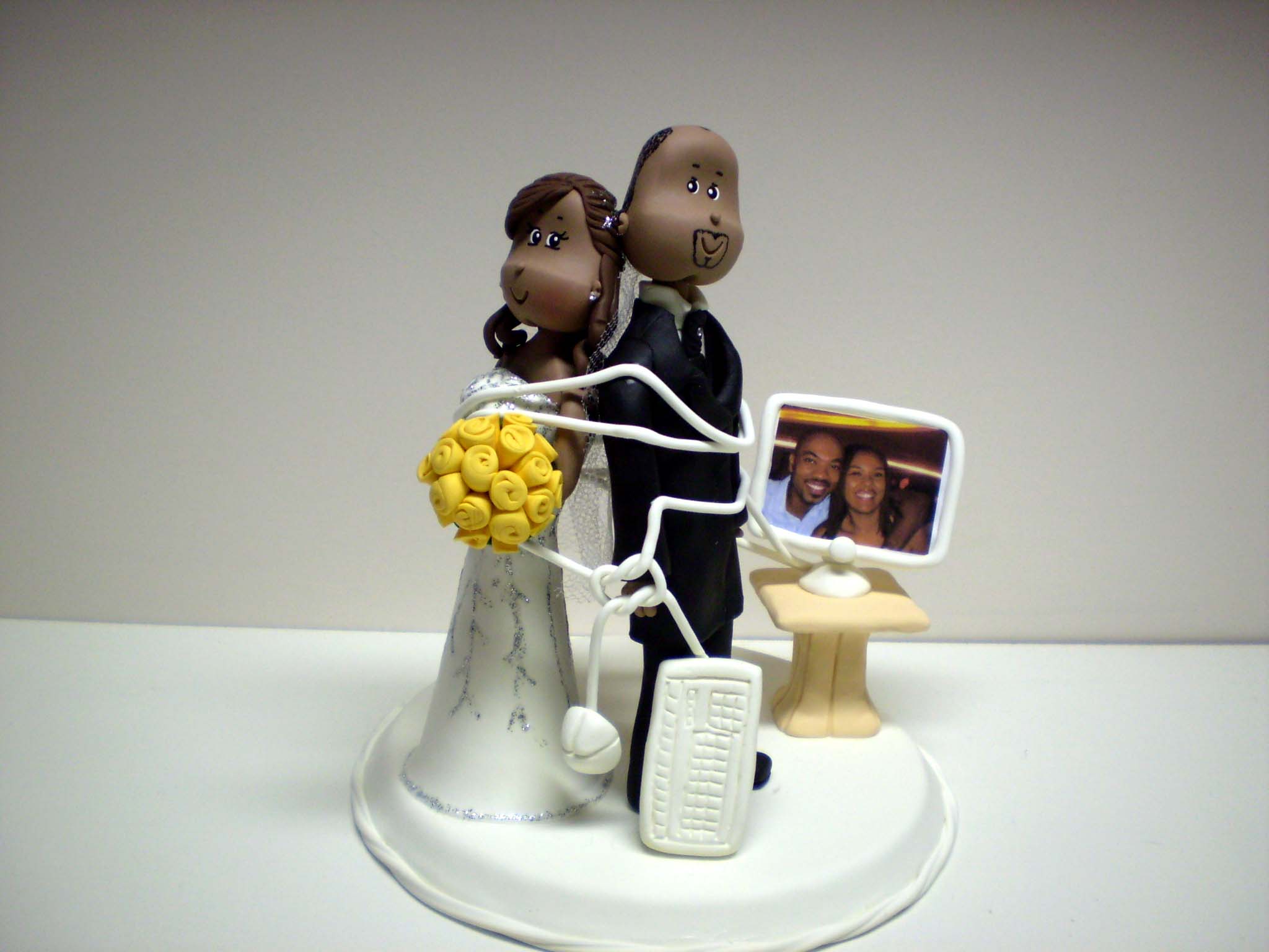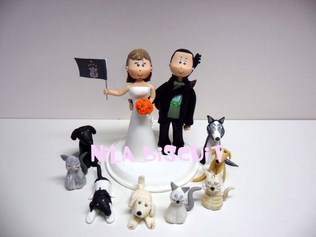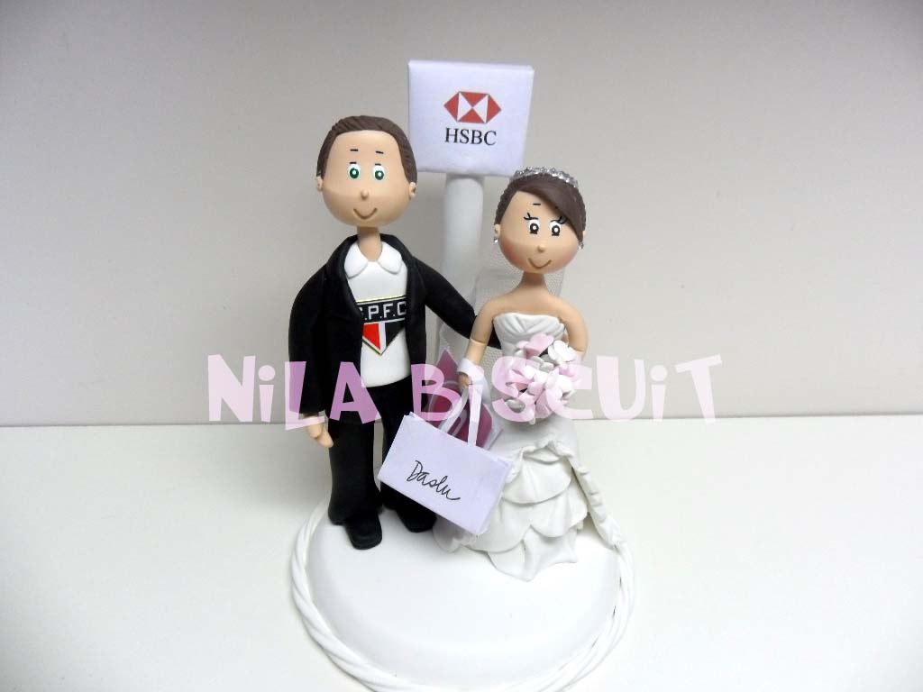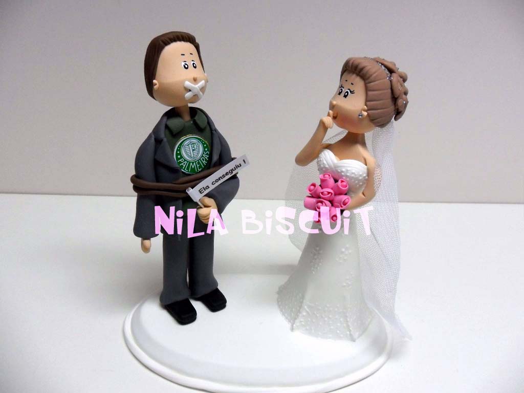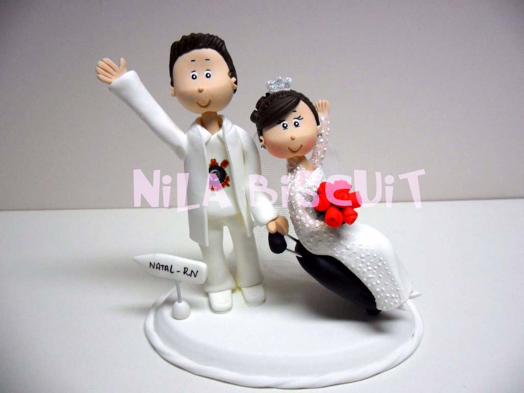 Um detalhe a mais colocado no Topo de Bolo faz toda diferença, pode ser incluso acessórios como, motos, bicicletas, veículos ou itens que lembrem a profissão, ou alguma mania, um animal de estimação, um hobbie, um gesto, uma frase dita, personalizando e fazendo com que ao olhar os Topo de Bolo / Noivinhos as pessoas saibam que esta peça fala sobre alguem.