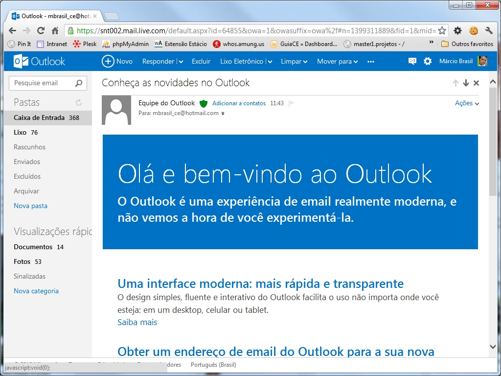 Agora em 2013 ele foi repaginado e incorporou o Outlook, serviço que antes era separado do email.
