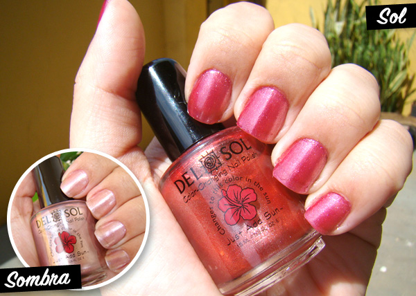 Outra super novidade são os esmaltes que mudam de cor no sol. Uma das marcas mais conhecidas nesse segmento é a Del Sol. O novo truque do esmalte é que ele possui duas cores em uma só tonalidade que muda de cor.