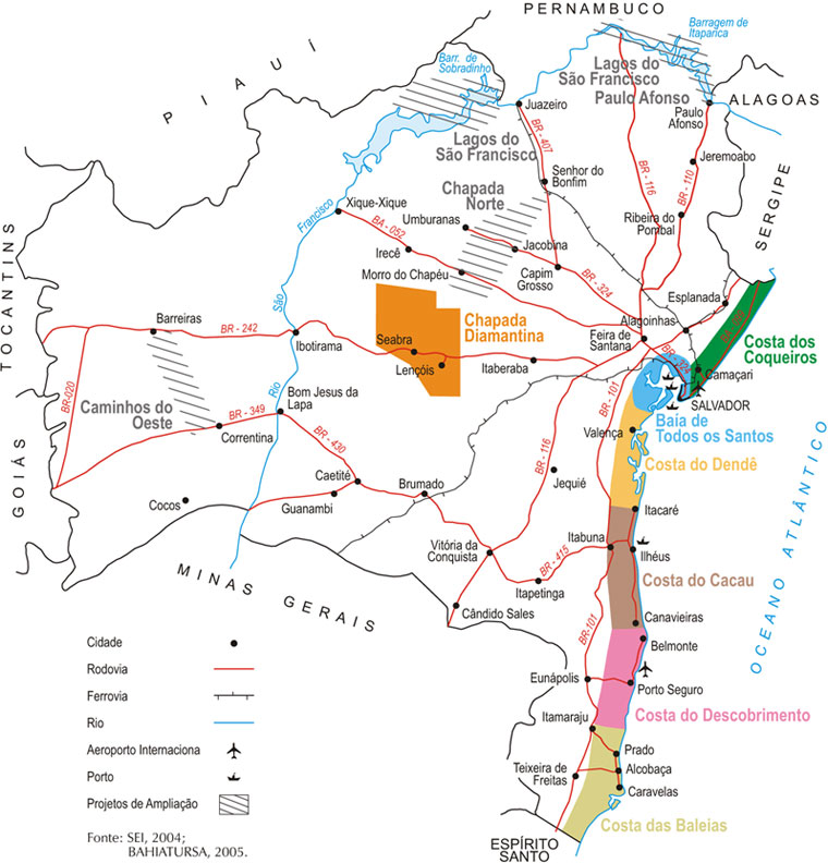 Mapa da Bahia roteiros de turismo