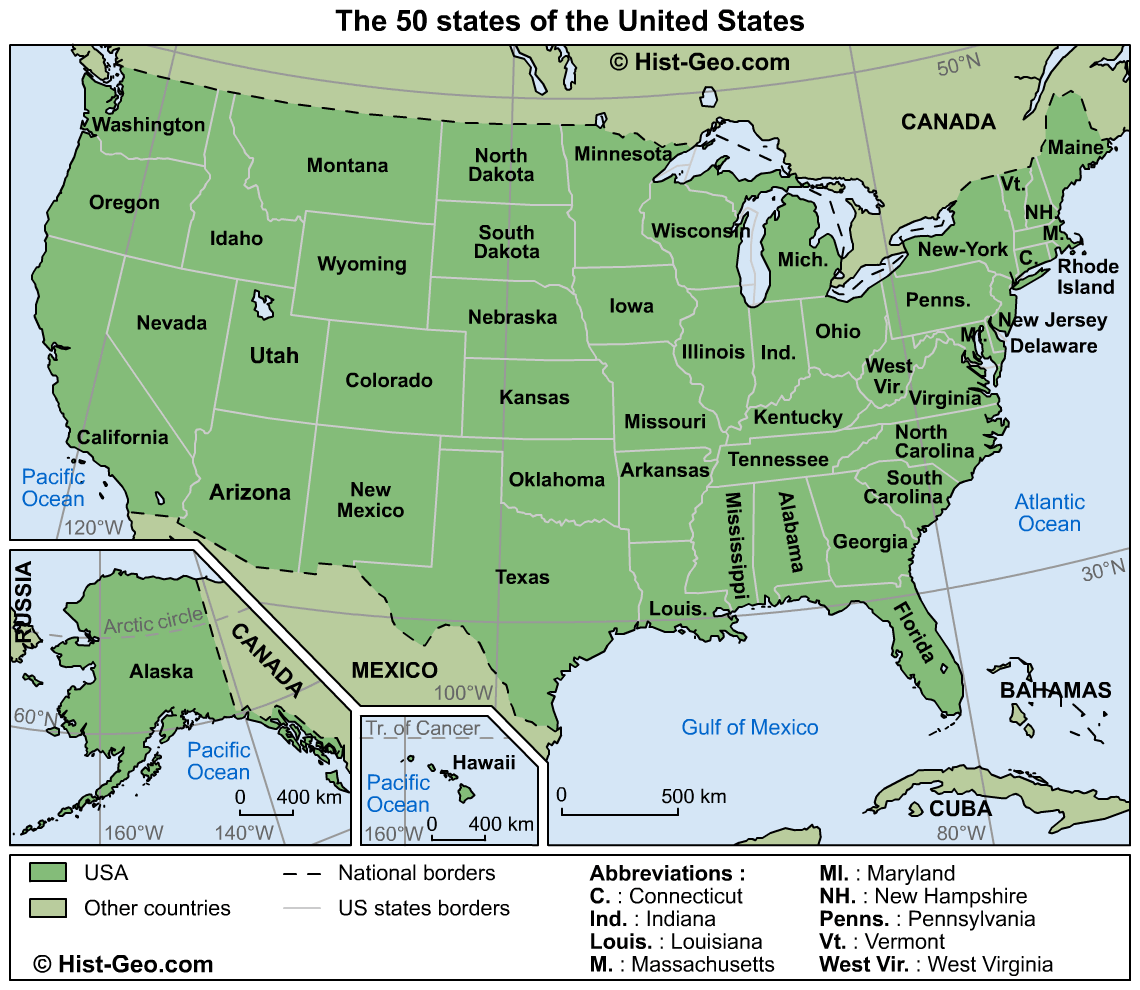 Veja a História do País e logo abaixo, mapas dos Estados Unidos.