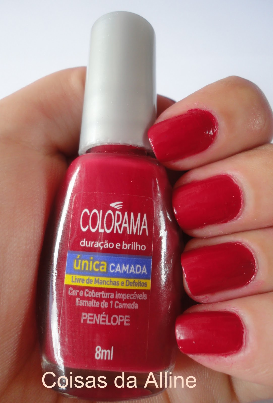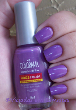A promessa dos novos esmaltes Colorama única camada é de cobrir as unhas com apenas uma aplicação do esmalte, não sendo necessário passar mais vezes. Para isso, o pincel é mais grossinho e o esmalte mais consistente. A secagem é bem rápida, e as cores são lindas e brilhantes, principalmente o amarelo pop art e o violeta. Os esmaltes custam em média R$ 3,80 e valem a pena, já que cobrem a unha de primeira, durando mais tempo e demorando para descascar.