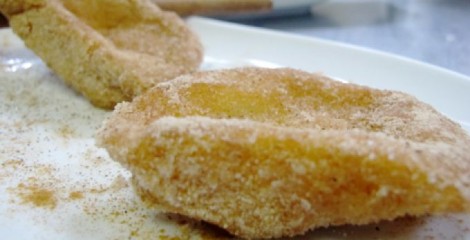 Escorra em papel toalha e depois passe cada rodela numa mistura de açúcar com canela em pó a gosto.