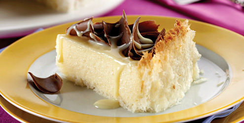 - Regue com leite condensado e decore com raspas de chocolate. Dica: use coco de pacote para preparar a massa.