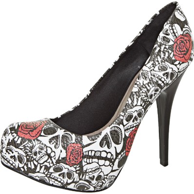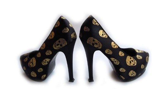 O sapato com estampa de caveira é um acessório que vem sendo muito procurado ultimamente. Há um tempo atrás, quase não era vendido no Brasil, por isso as mulheres que gostavam tinham que pedir do exterior e esperar meses para chegar.