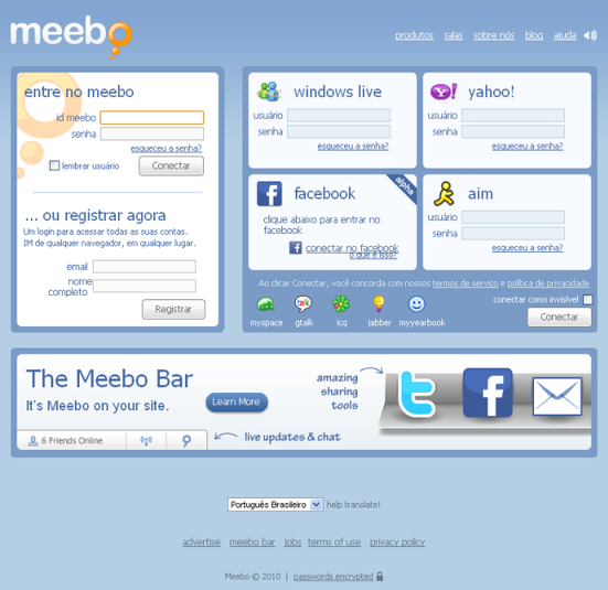 O Meebo é um site que gerencia contas e da acessos a outros sites e serviços na web.